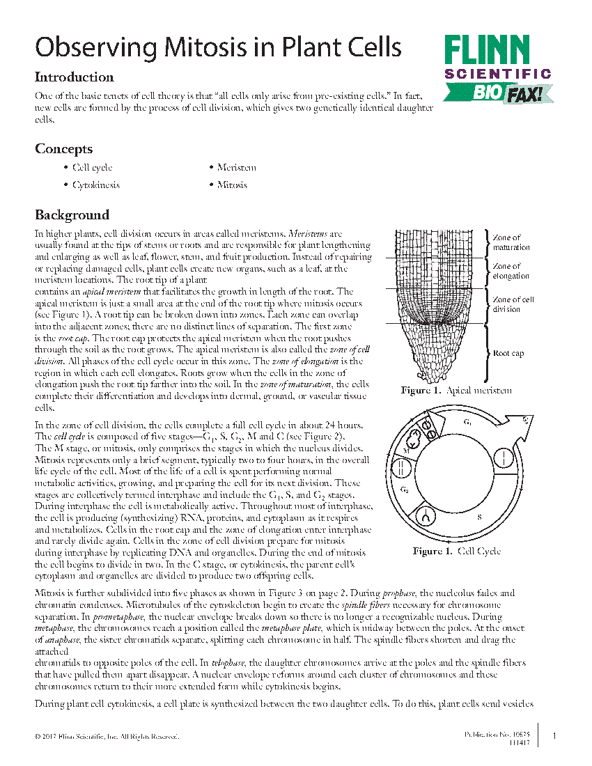 Mitosis in animal cells is controlled by certain mitogens. Intercellular spaces appear between the daughter cells. Mitosis in suspension cultures of higher plant cells in a.· the time of sampling, were separable. Colchicine is an alkaloid obtained from colchicum autumnale and many species of the family the plant breeders are using the cochicine induced polyploidy for producing new varieties of economically. In prophase, animal cells have centrioles that organize spindles while plant cells don't. Mitosis occurs in many different types of cells in the animal body but in plants, it is seen in the meristem cells. And the cell wall mitosis takes place actively in meristematic cells of plants, apical meristems of roots and stems which increases the length of roots and stems, vascular cambium which. Plants have a larger vacuole to hold water and other fluids that regulate osmosis. What would happen if mitosis were uncontrolled? Prophase, metaphase, anaphase and telophase. Besides the mitotic spindle, the evolution of a band comprising cortical microtubules and actin filaments, namely, the preprophase band, is evident in plant cells. In this exercise, you will observe dividing cells in the zone of cell division of a root tip. Jim mauch and jim schwagle.